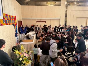 会場全体に、笑いと驚き、そして感動の渦が巻き起こりました。解体されたばかりの大トロ・中トロ・赤身が、目の前で次々に寿司となり、次々と運ばれていく。子どもたちが目を輝かせて見つめ、ご家族が笑顔で頬張る、その一人ひとりの表情が、何よりの“ご褒美”でした。